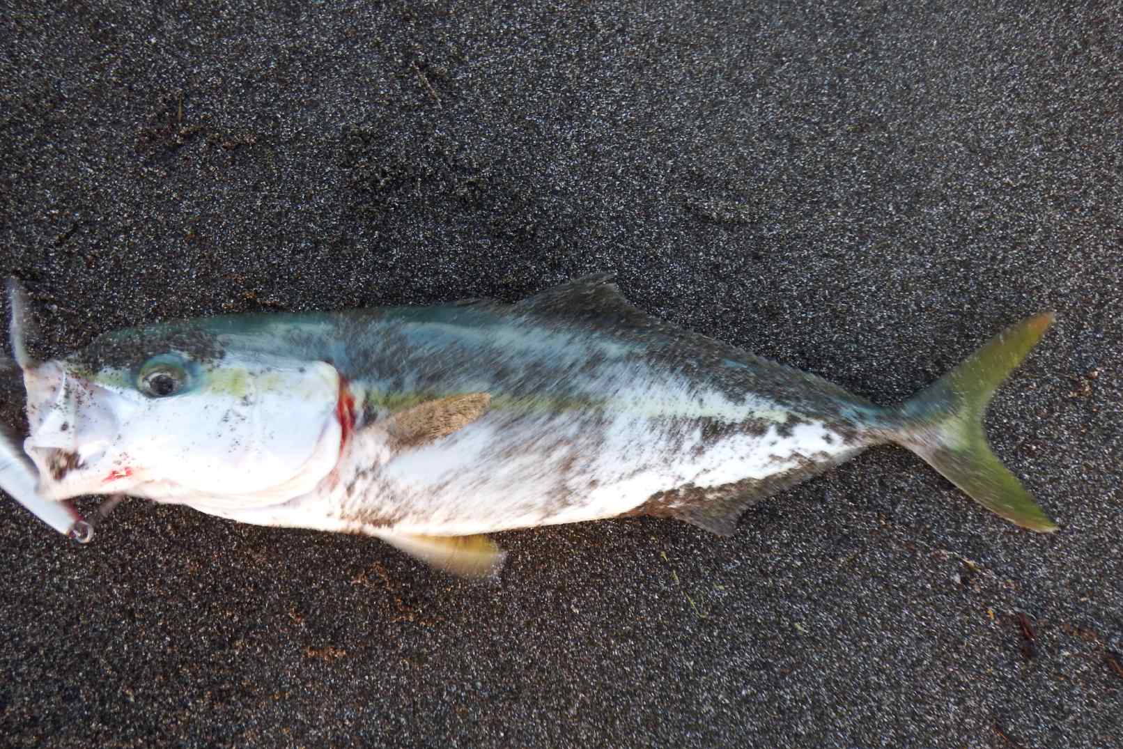 ブレーク付近で激しく暴れだす、シーバスかと思ったが40cm弱のワカシでした。