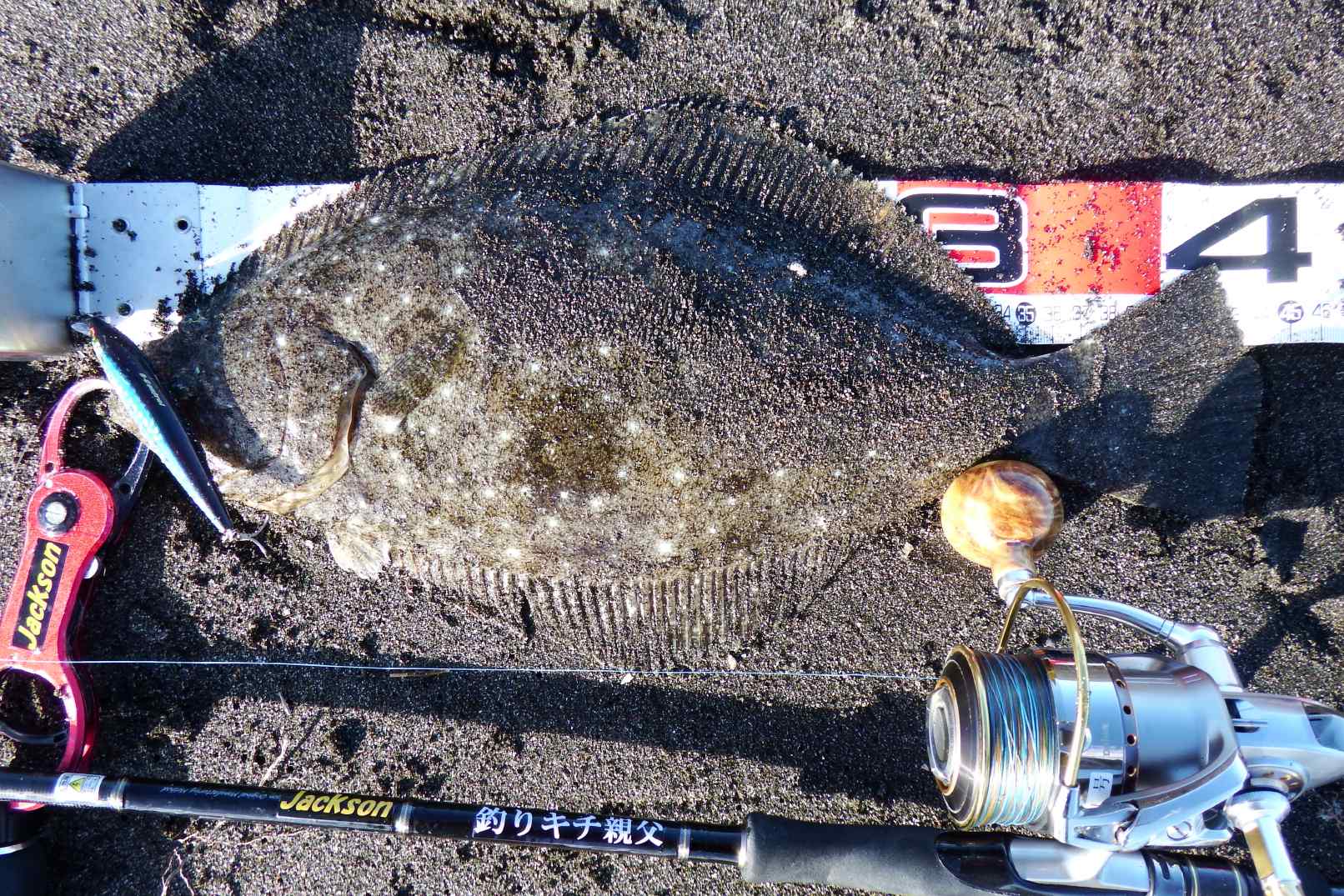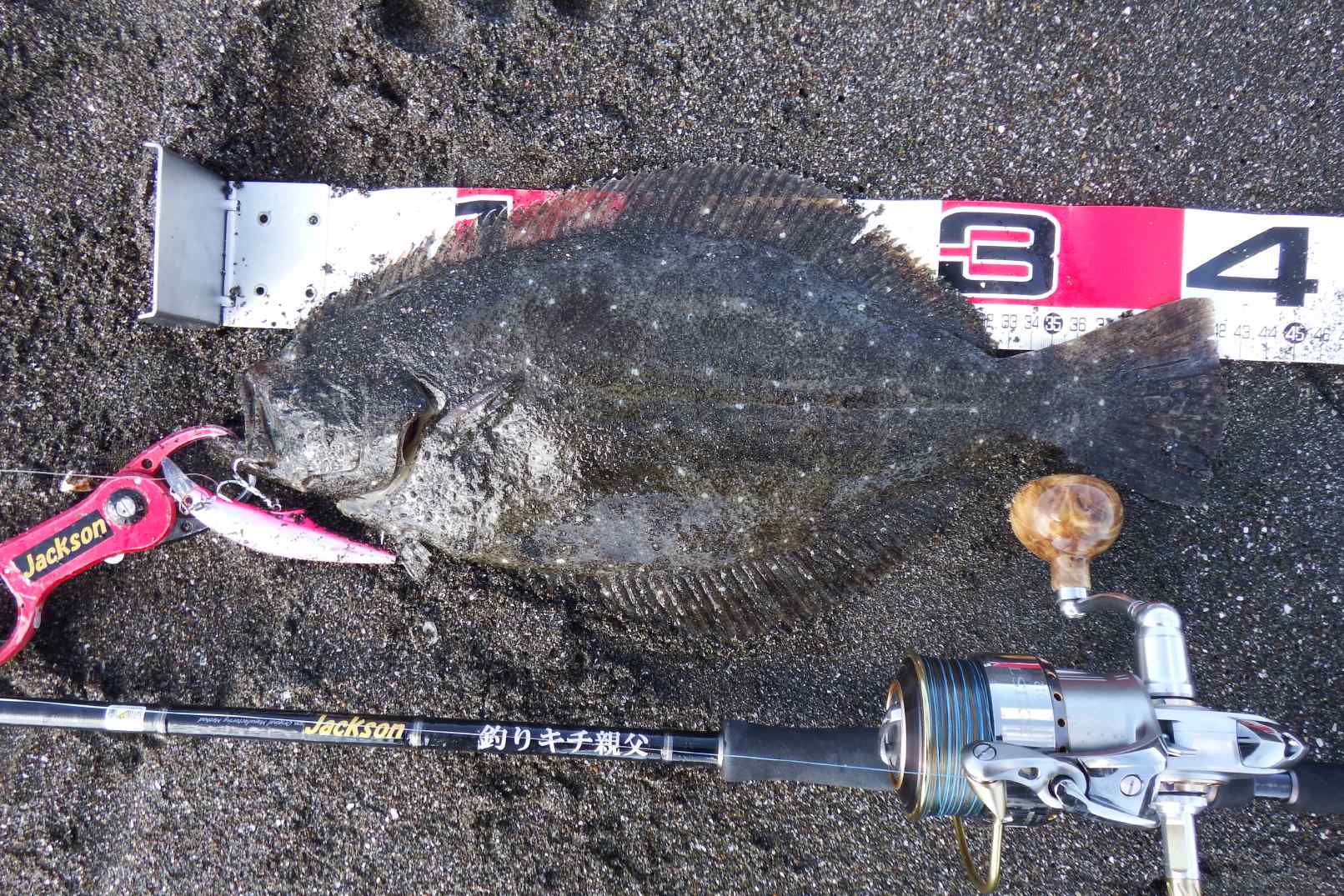 データー:11:40ゲット、体長42cm、水温21.8℃、ヒットルアーはG-controlヒラメのエサ