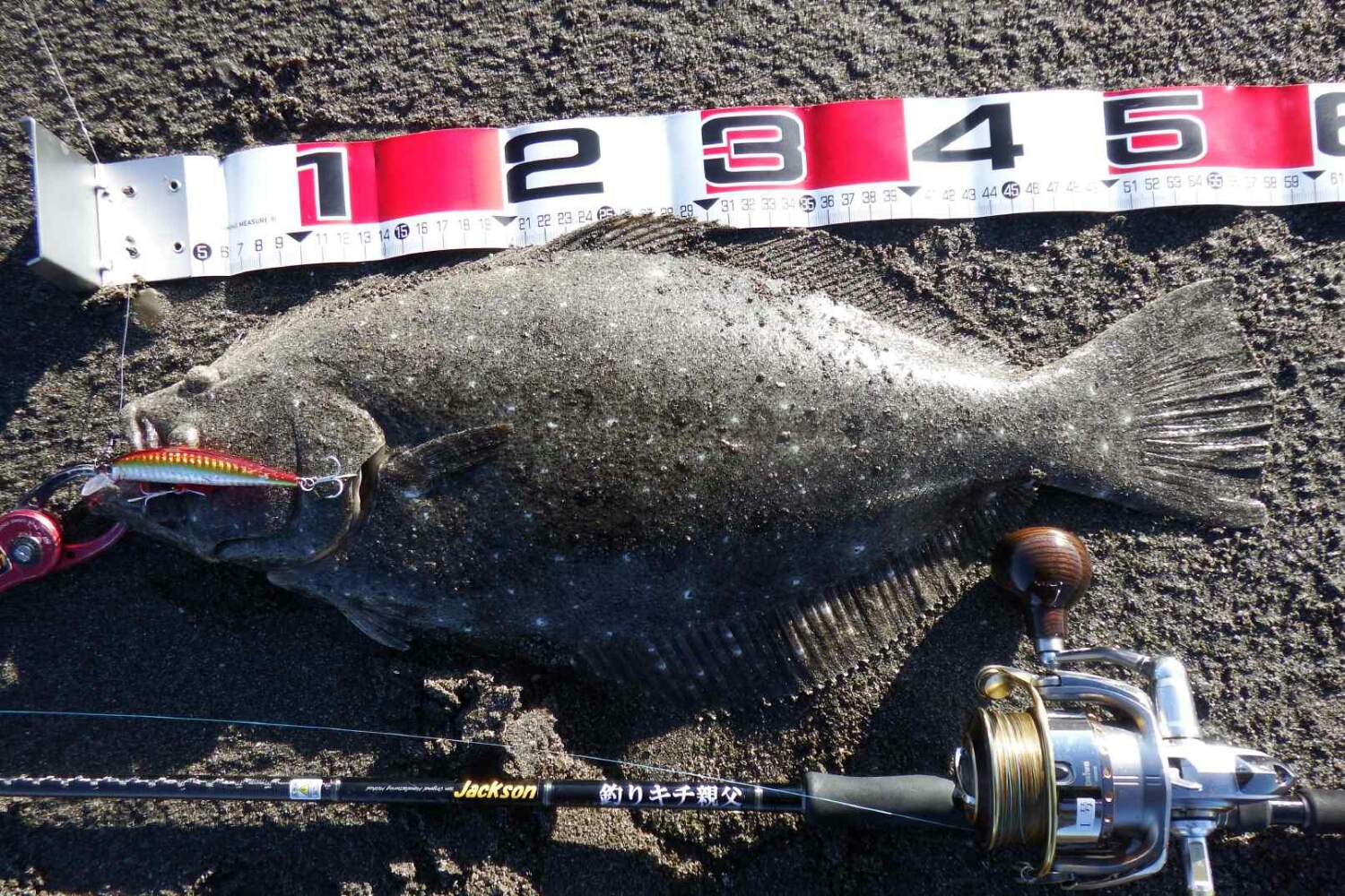 データー:08:20ゲット、体長58cm、水温13.8℃、ジャクソン G-contoroi ダブルアカキン。