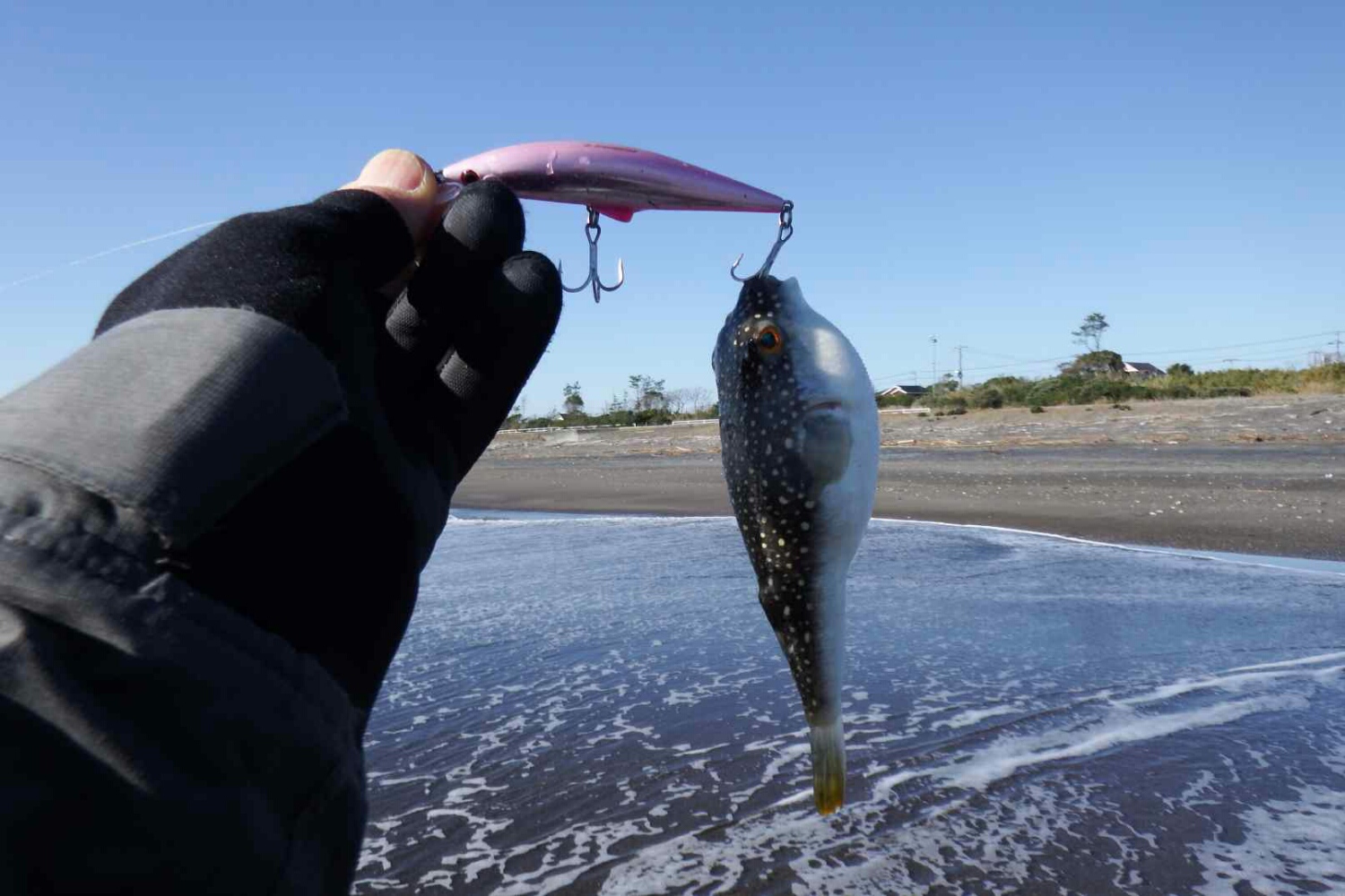 1時間ほど経過した頃、北の方から一人のアングラーが近付い来たが、まさかオニさんとは思わずキャスト続行。