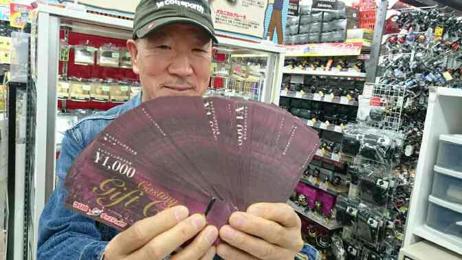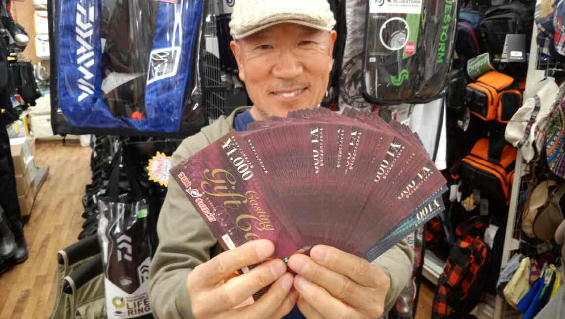 合計金額226,300円、豊かな気持ちでタックルを買い漁った結果、半月で残った金券は25,100円!(笑)