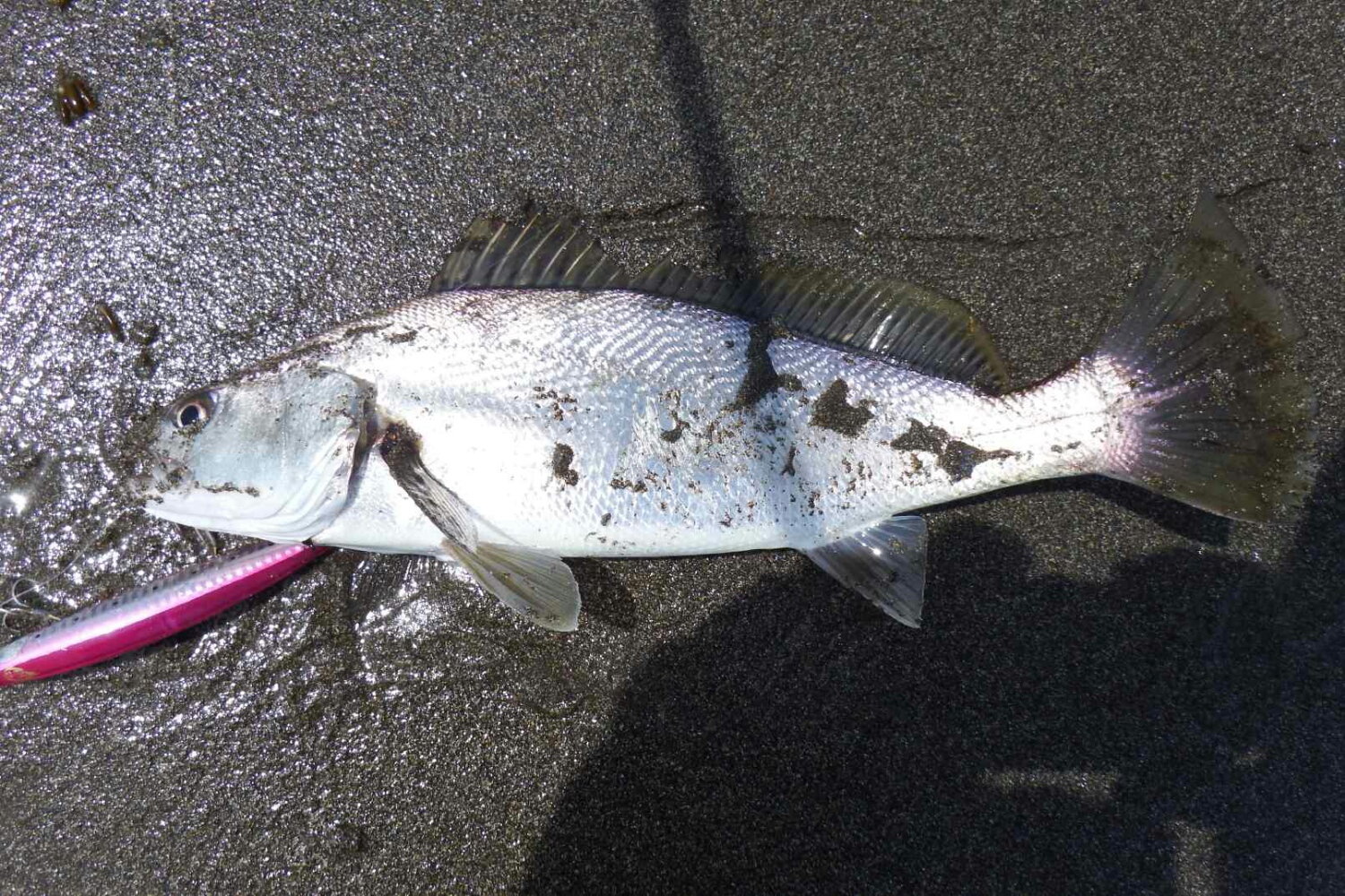 時々、鳥山が出来イワシが打ち上げられ期待するが、イワシにフィッシュイーターが付いていない様だ。
