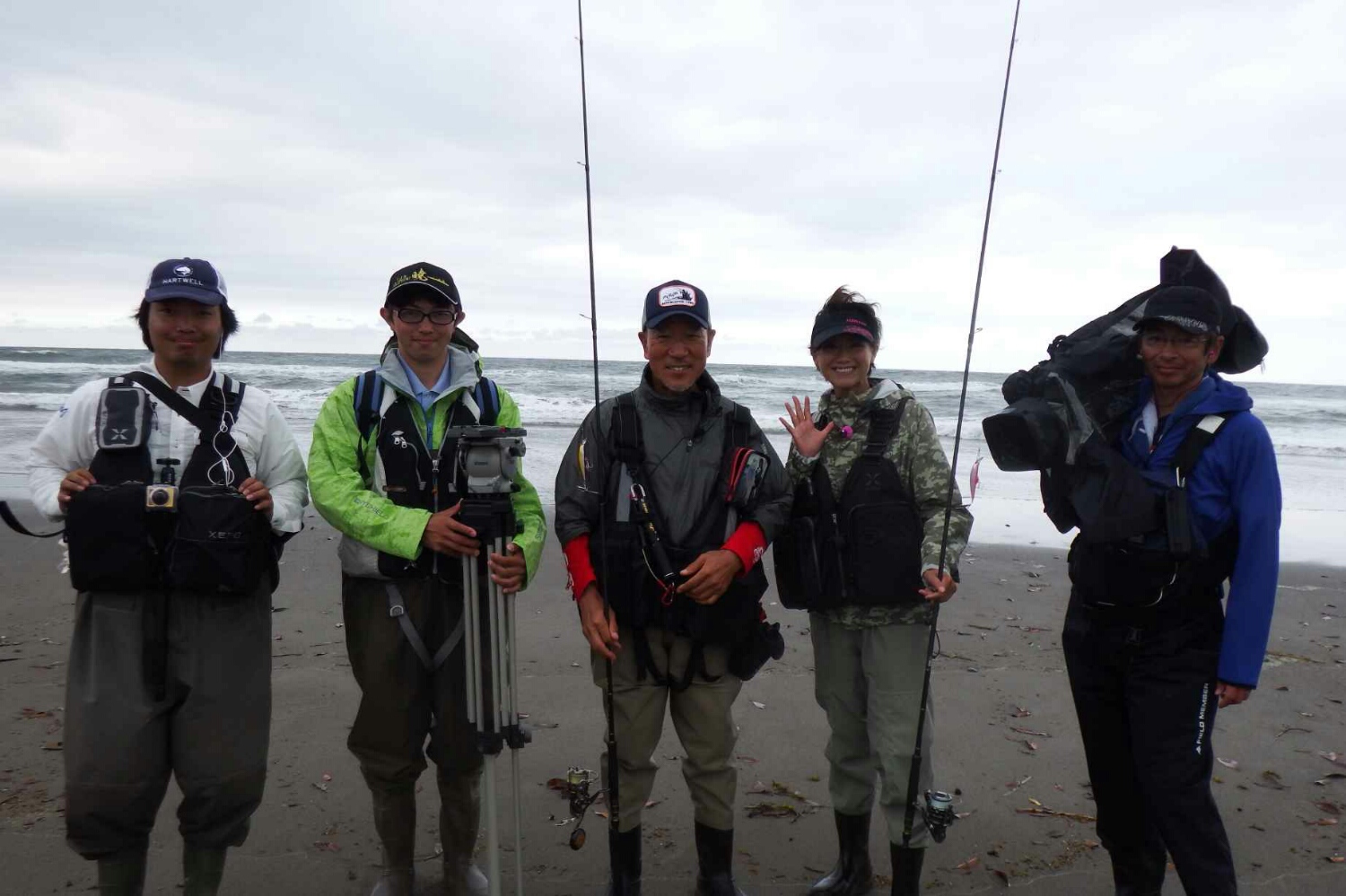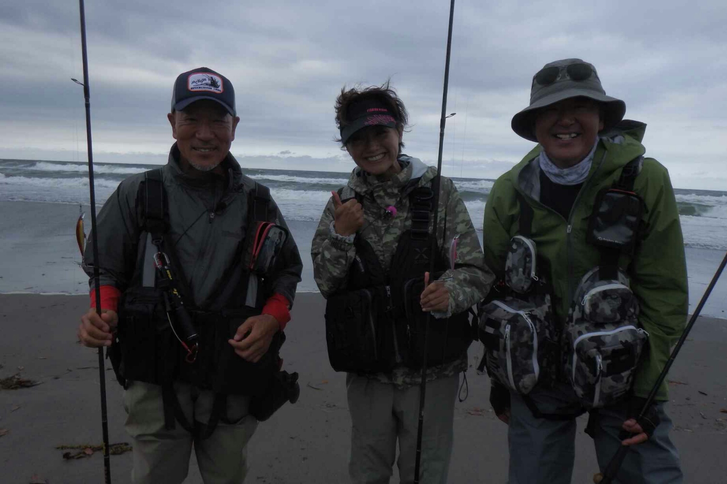 福島さんや撮影クルーと会う前に、数ヶ所の海岸を見てまわったが、何処もウネリと濁りが酷く心折れ掛けたところで、釣友の山田さんと遭遇。