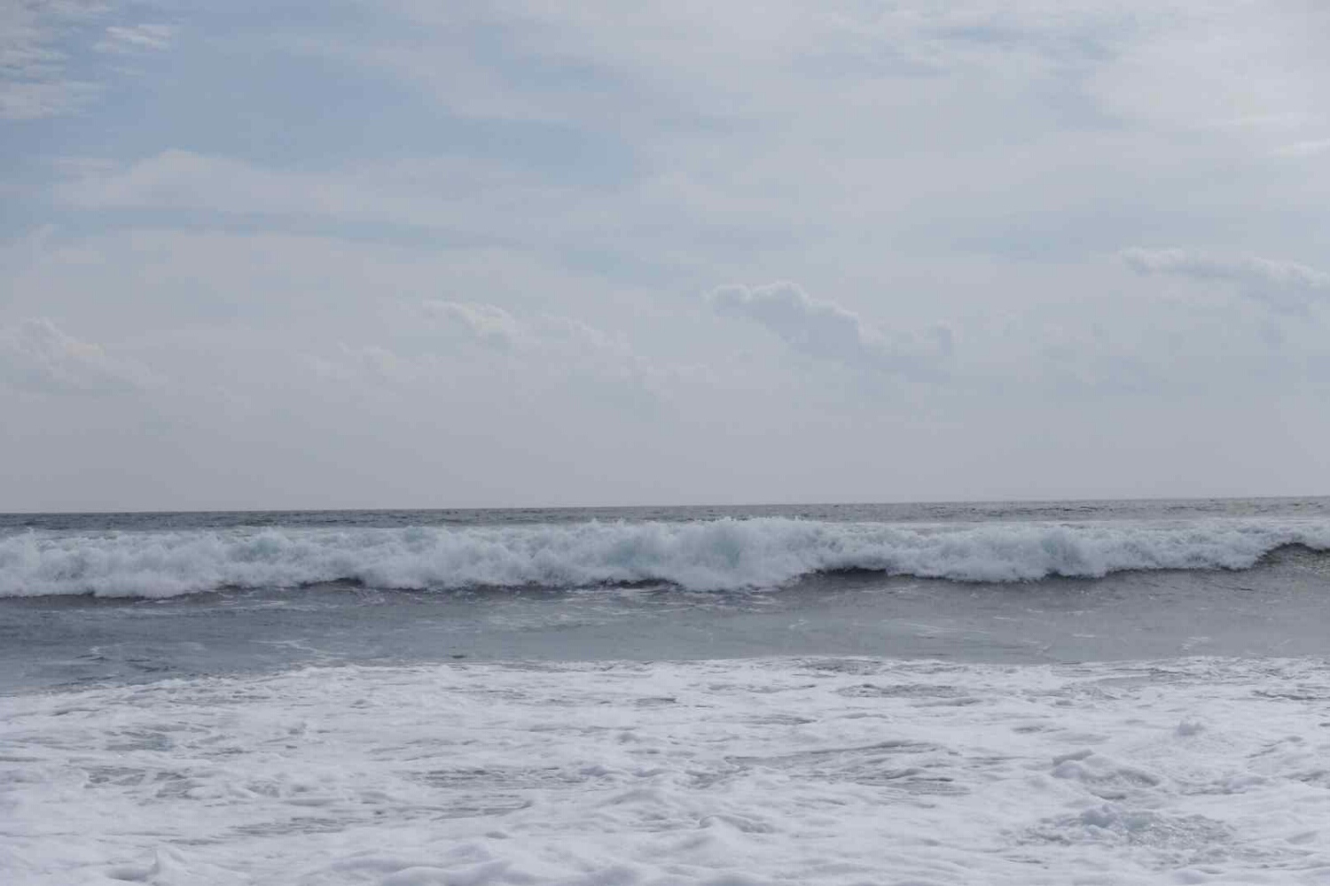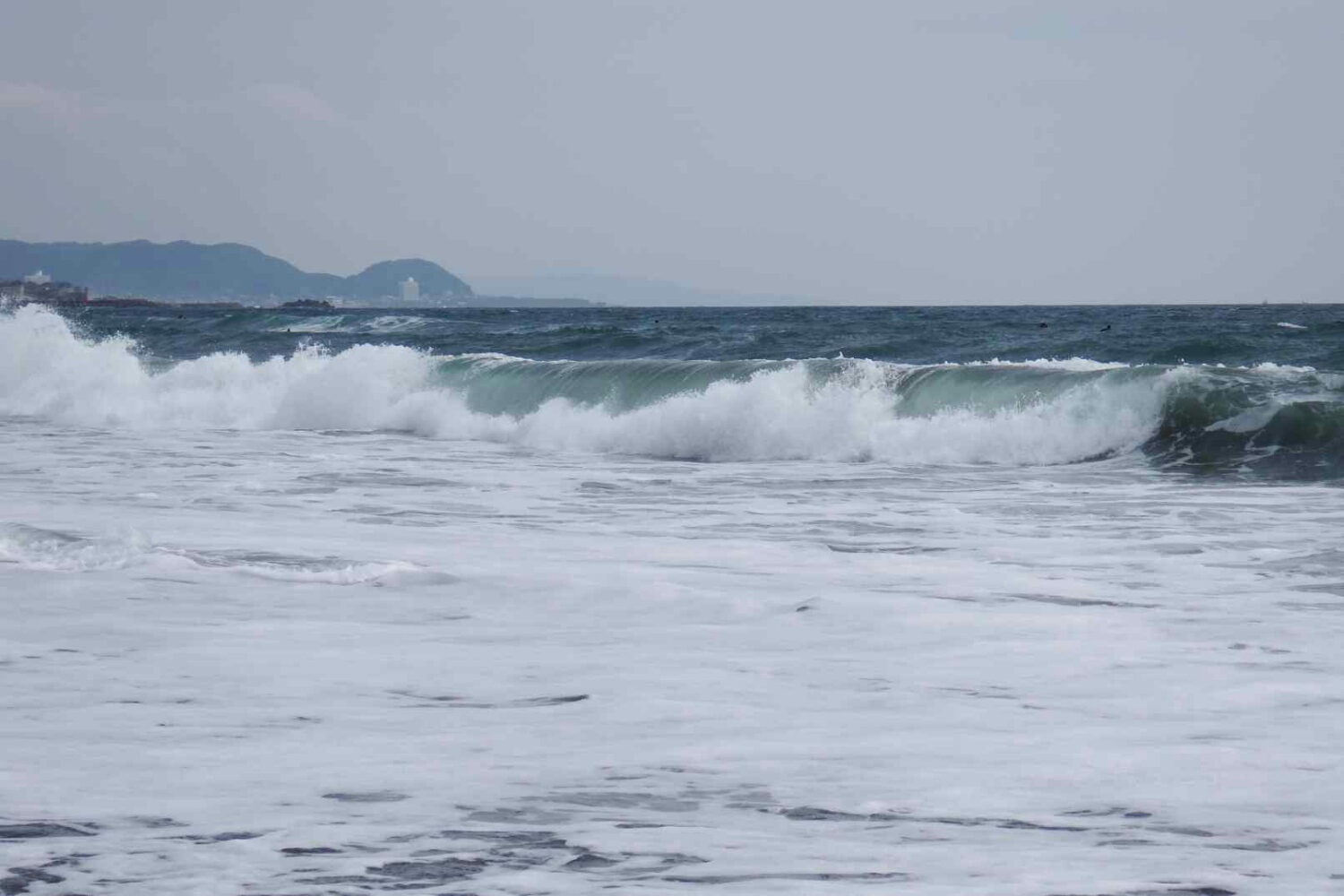 12:30、準備を済まサーフに下りると、朝よりも波は高く北東の風も強く横潮も速くなっていたが、水色だけは良い。