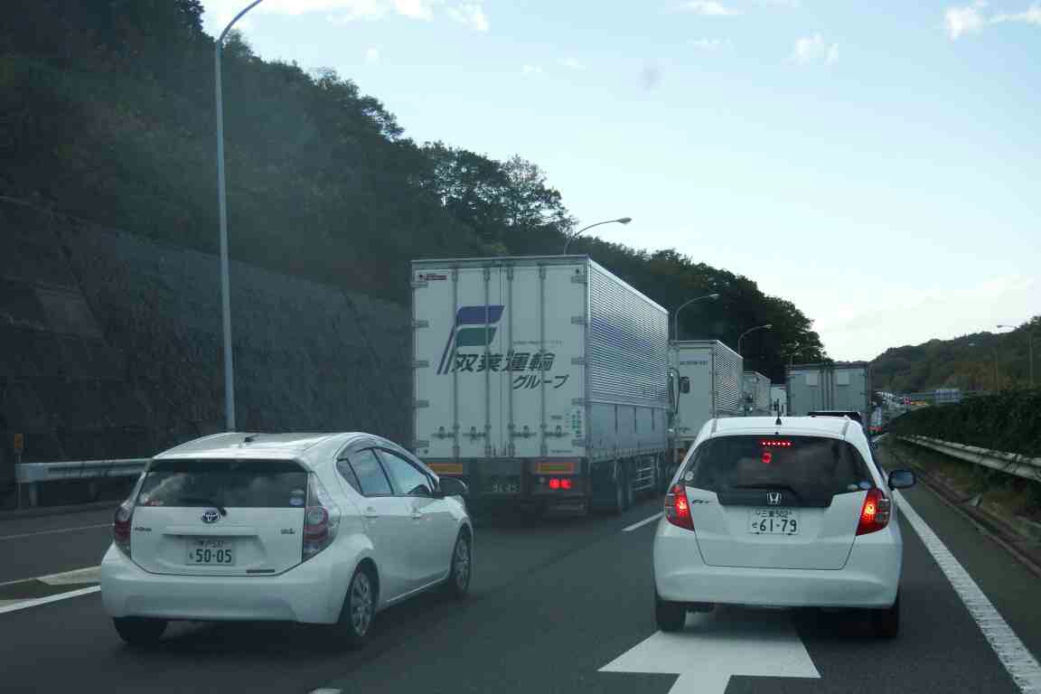 ヤット渋滞から抜け快適にドライブしていると、愛知県に入ると又渋滞、今度はトラックの横転事故。