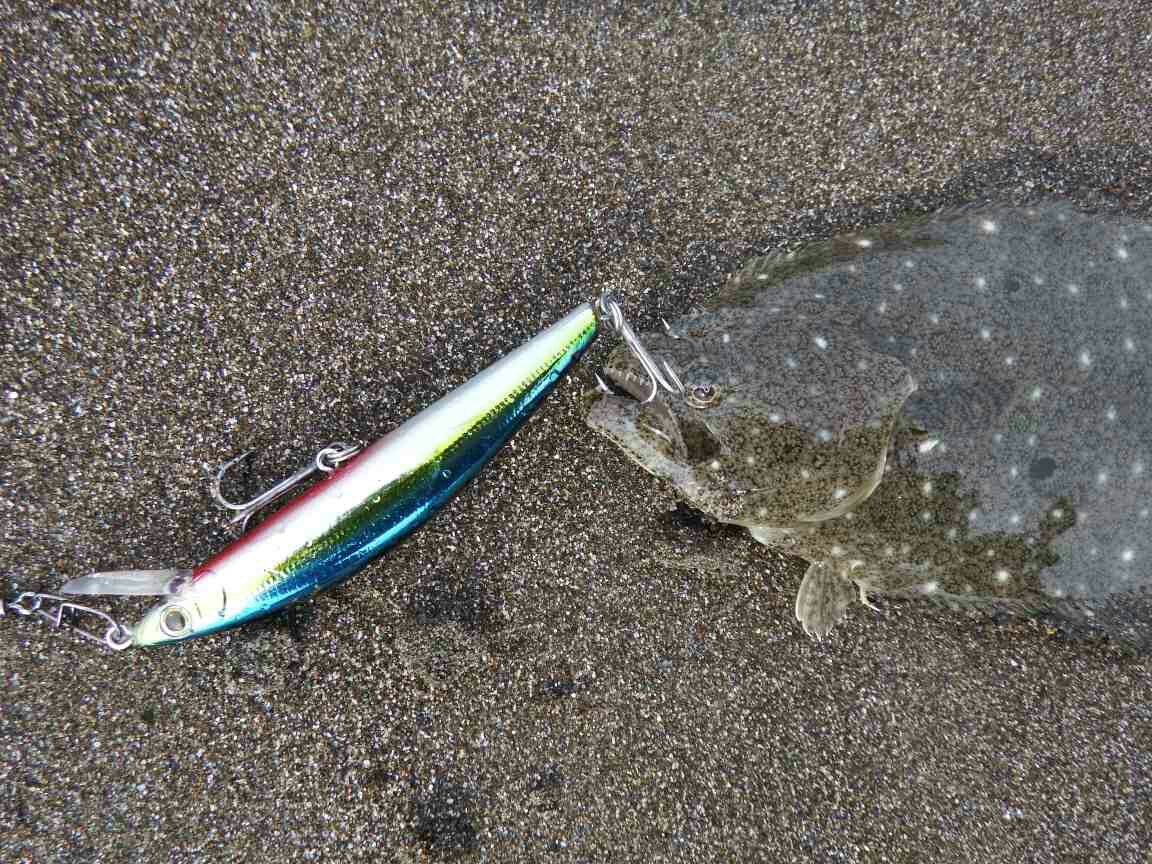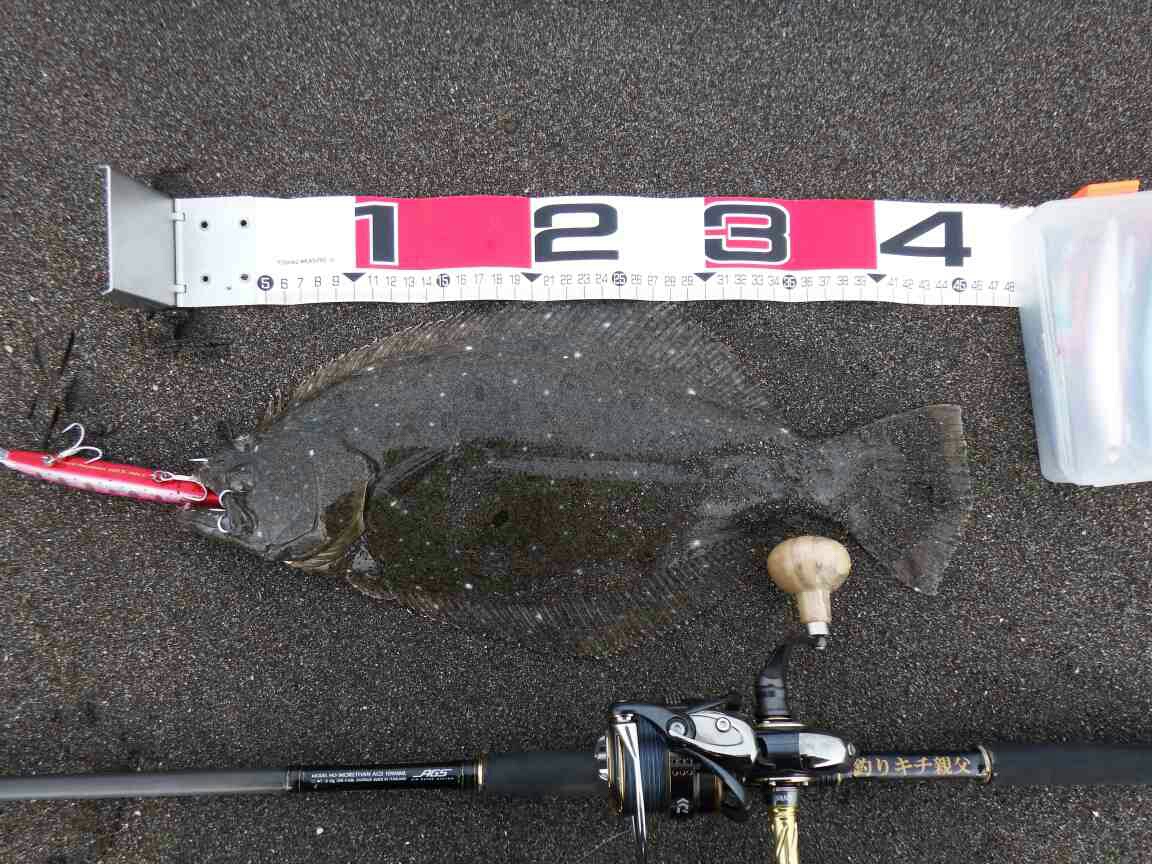 ハンドルを回すと抵抗感からサイズはイマイチだが、間違いなくヒラメサイズと確信。