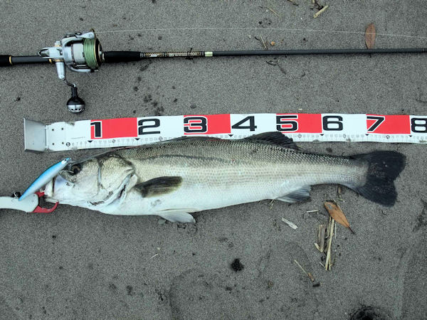 15:10、ゲットしたシーバスは74cm(4kg)メタポでした。いいファイトありがとう。