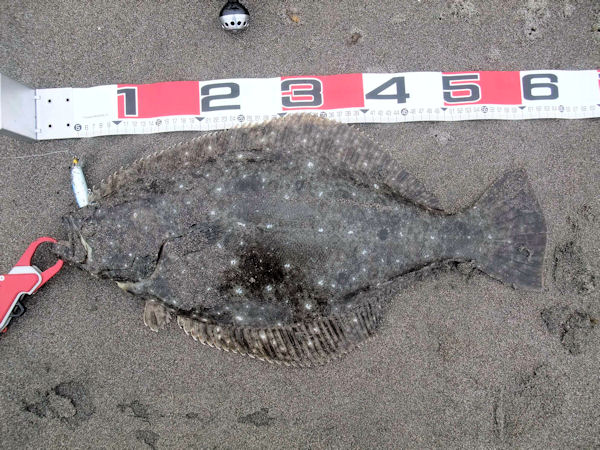 09:20、61cm (2.3kg) 肉厚のヒラメをゲット!