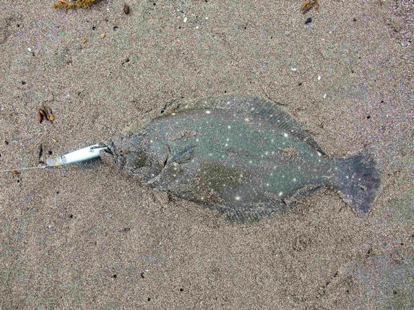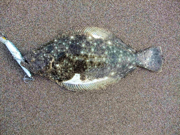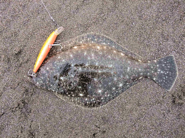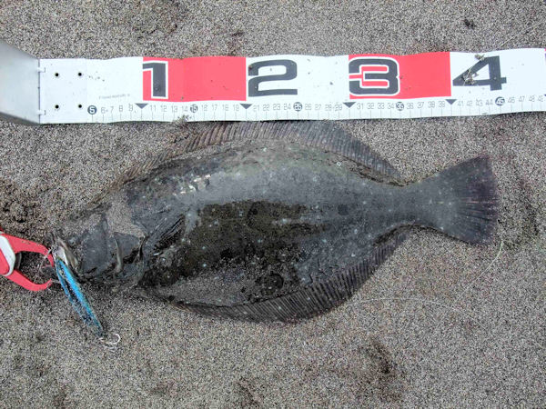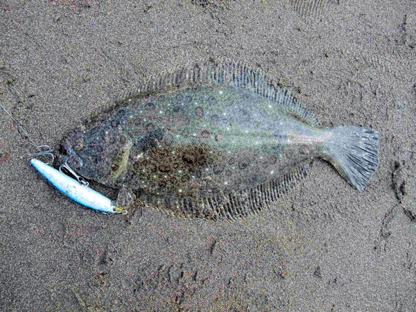 約2時間で、ヒラメクラス1枚とソゲクラス2枚、波打ち際でバラス