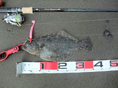 10:30、ゲットした獲物は40cmぎりぎりのヒラメサイズでした。