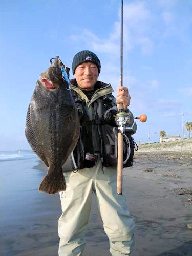 ポイント付近に到着すると、地元アングラーが7人いて既にヒラメが一匹上がっていた。