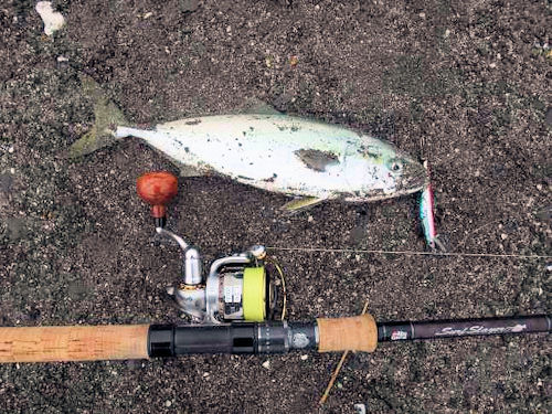 ワカシでは無いし、シーバスでも無さそう、「何だろう」と暫らくファイトを楽しんでいると