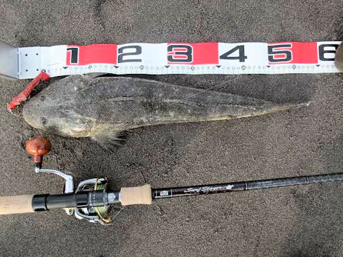 更に移動するとナイスなポイントに遭遇、暫らくキャストを繰り返していると、ヒラメのバイト!!