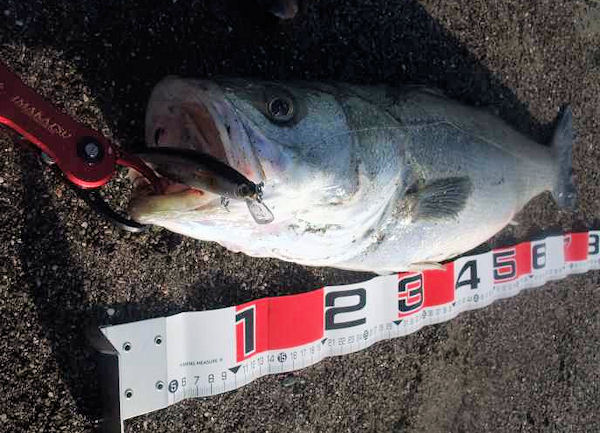 遠目で見た感じ、ゲットした獲物はシーバスのようだ。