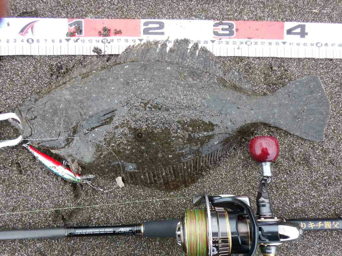 データー:14:30ゲット、ヒラメ体長45cm、ジャクソン ピンテールチューン27 キビナゴ
