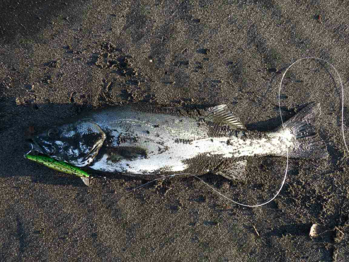 「この水温では今日はダメかもしれない」と思いながら、キャストを繰り返すこと10分、待ちに待ったバイトに気を良くしたが、シーバスだった。