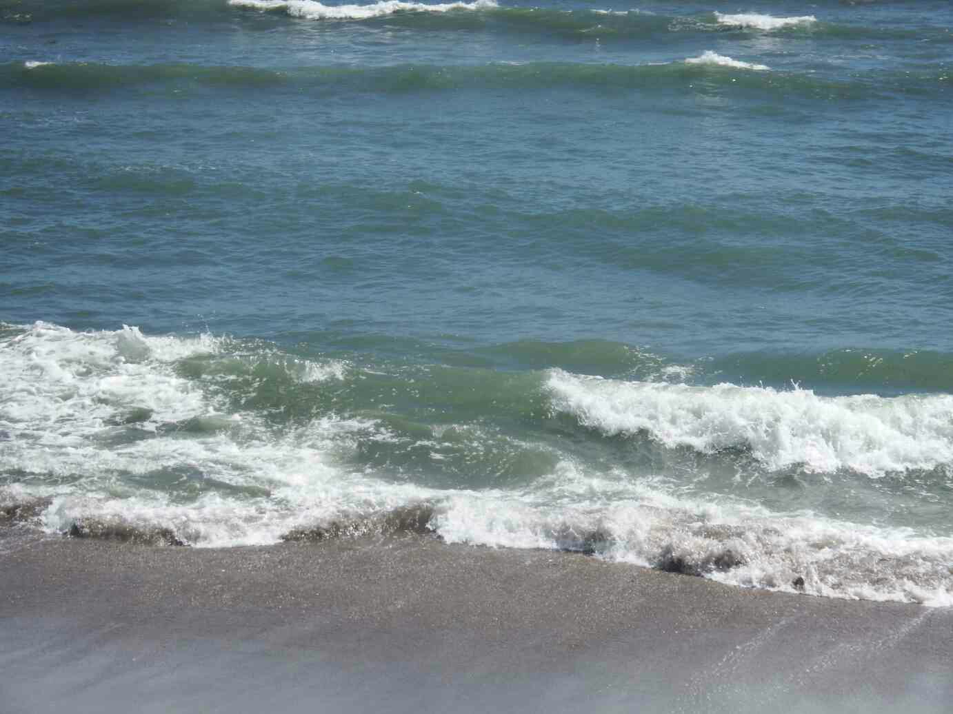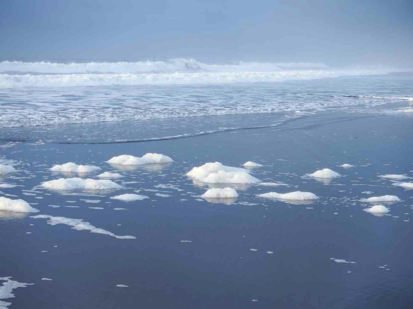 白波ではなく泡状態の波が押し寄せる。