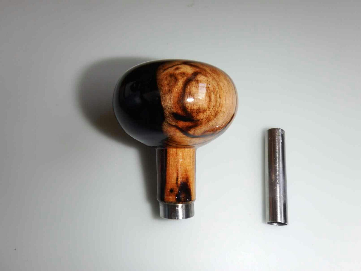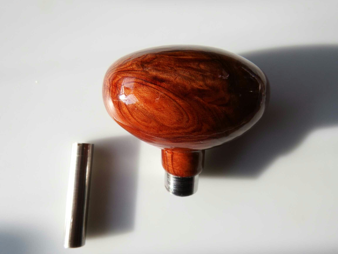 初代はノブの頭まで穴が貫通し、後で詰め木をしていました。
