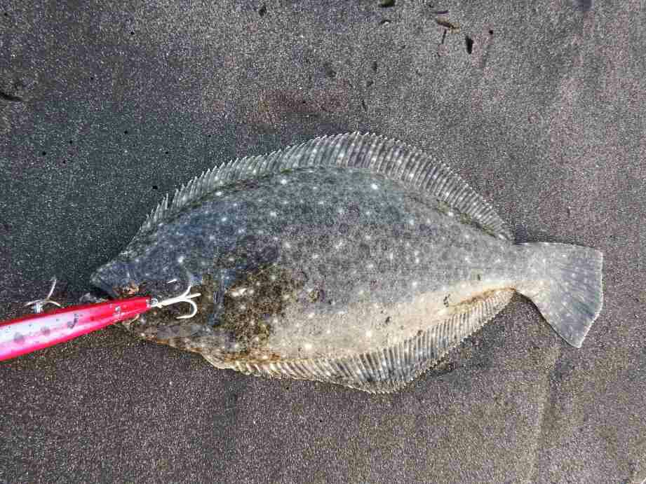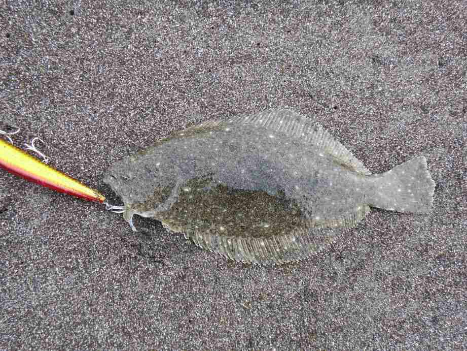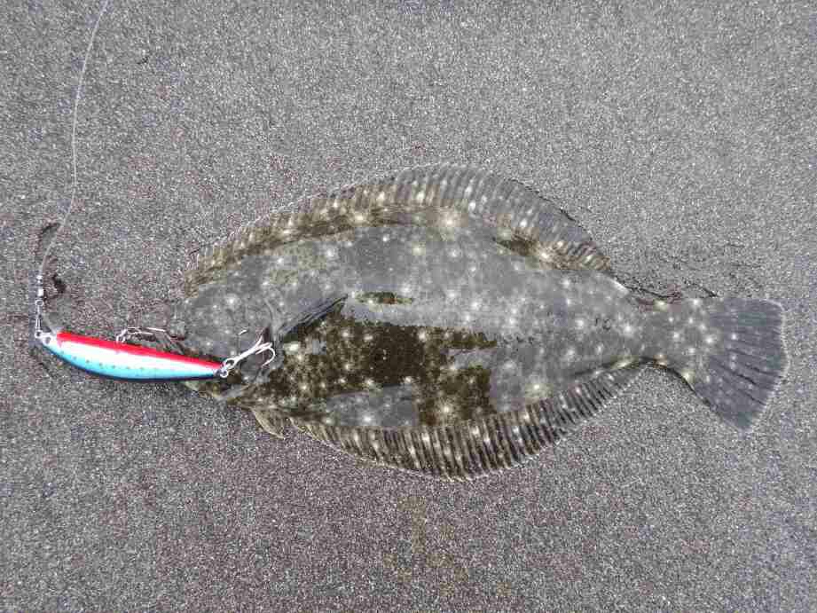 よく見ると背中にフックが掛かっている、強い抵抗感の原因が分かった瞬間フックが外れ、次に押し寄せた波がヒラメを攫って行きました。